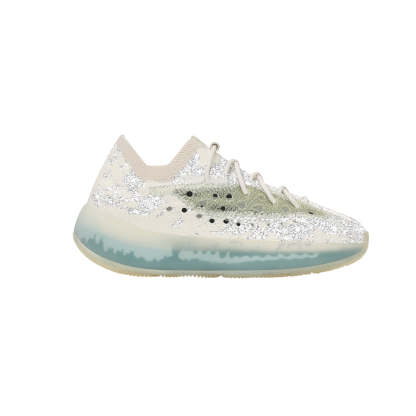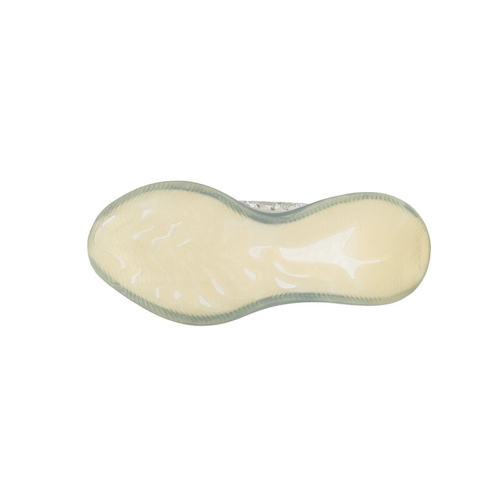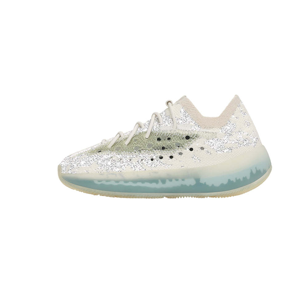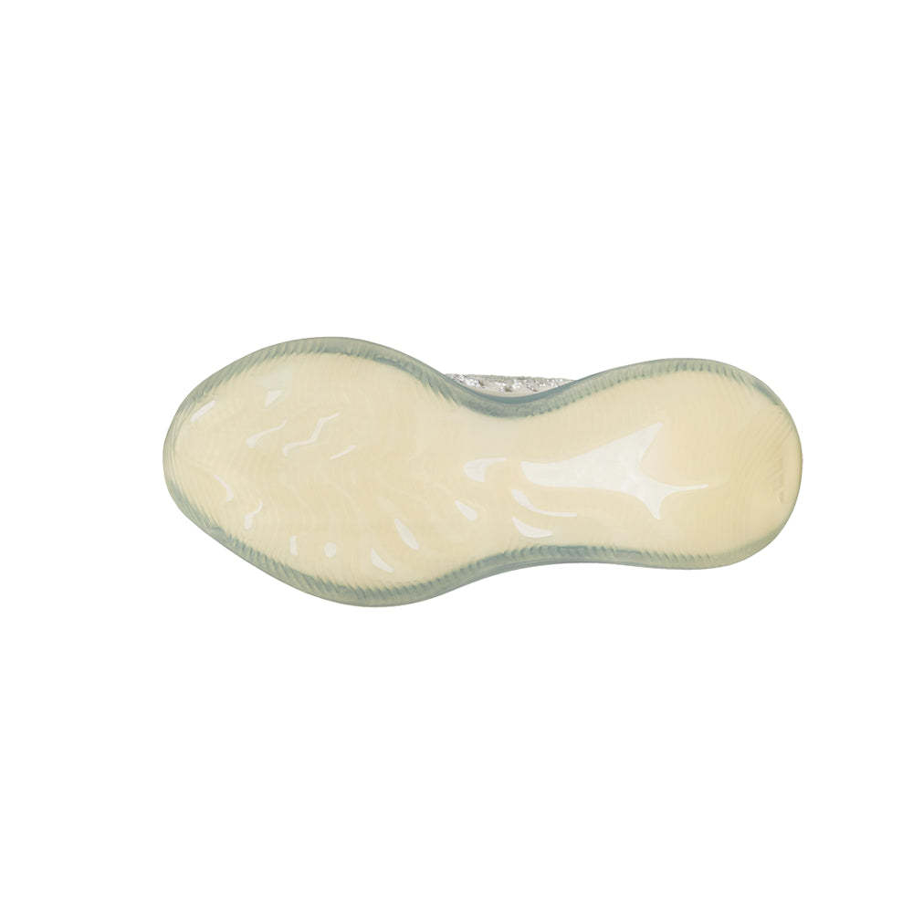 The adidas Yeezy Boost 380 Kids applies a subtle palette to a sock-like upper entirely constructed from flexible Primeknit. A camo-like pattern made up of white and off-grey tones is contrasted by the sneaker’s translucent monofilament window, which enlivens the sneaker’s lateral side panel with pale orange coloring and a unique see-through element. The full-length Boost midsole is wrapped in semi-translucent rubber and reinforced with a blue rubber outsole.