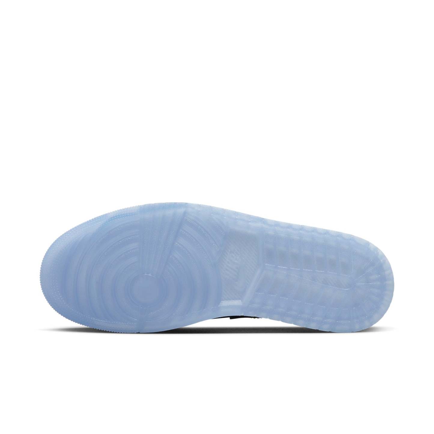 The Air Jordan 1 Mid SE 'Space Jam' is a stylish sneaker that features a black leather base, patent leather overlays, and a mesh tongue. The dark Concord tongue branding and insole are complemented by a white midsole and a dark, semi-translucent outsole. Perfect for any activity, this sneaker is inspired by the classic 'Space Jam' movie and is part of the Air Jordan 1 series. With its sleek design and comfortable fit, this sneaker is sure to be a favorite.
