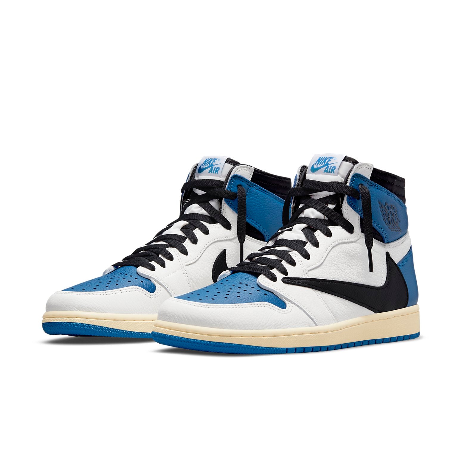 The Travis Scott x Fragment Design x Air Jordan 1 Retro High takes together two of Jordan Brand’s most influential partners. This AJ1 Retro features a White leather upper with a Blue toe box, heels, ankle flaps, and rubber outsole while having Travis’ signature flipped Black Swooshes on the sides. Moreover, adjacent to the Nike Air branding on the tongues is a banner that spells out “fragment design“. Stringing together its design are midsoles that come pre-yellowed and outsoles that are dialed to their titular shade. SKU: DH3227-105 Release Date: Jul 29, 2021 Color: Sail/Black-Military Blue-Shy Pink