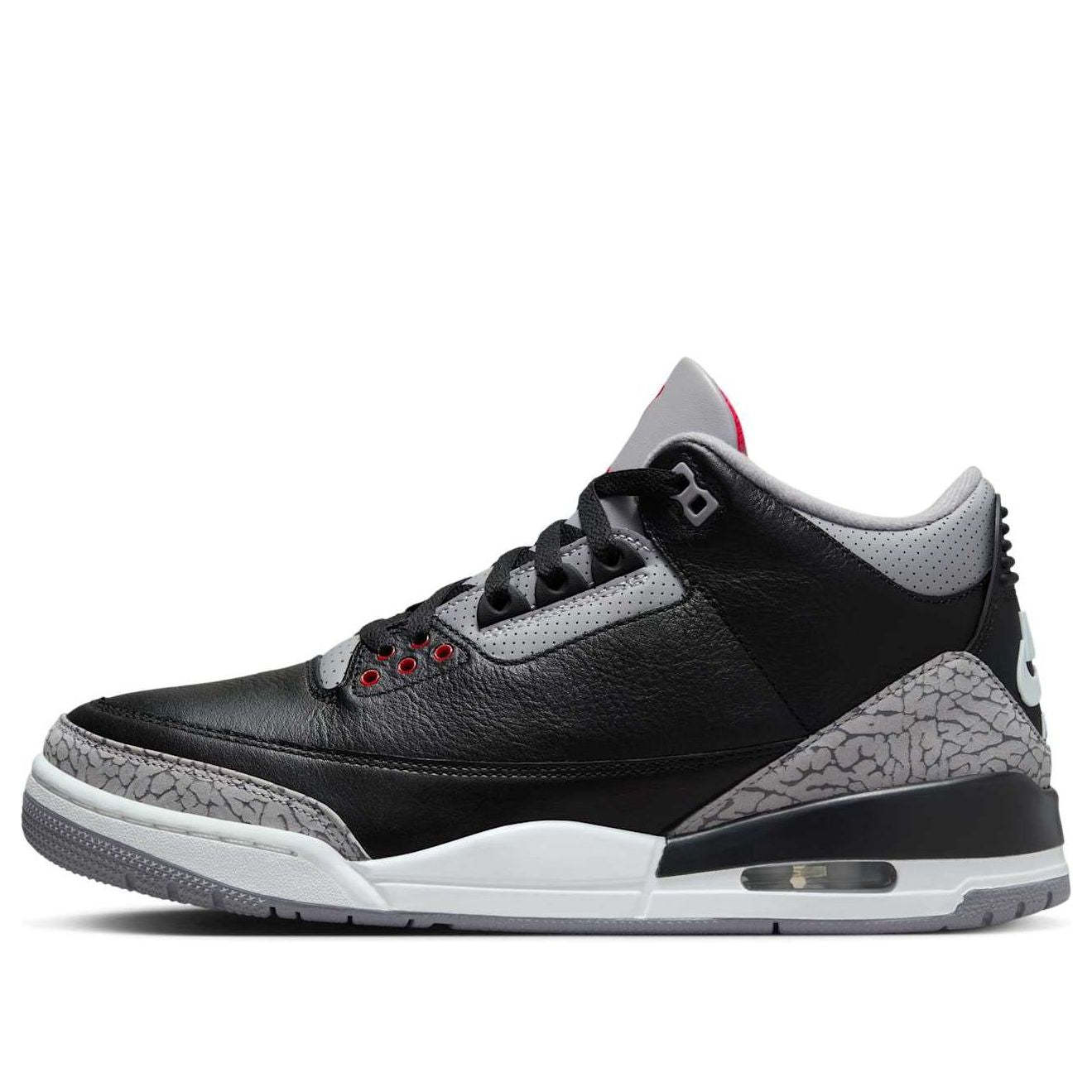 The Air Jordan 3 Black Cement is poised for a legendary comeback in 2024, reaffirming its status as an iconic pillar within the Jordan brand legacy. First introduced in 1988, the "Black Cement" colorway has transcended generations of sneaker enthusiasts, becoming synonymous with timeless design and a pivotal chapter in basketball history. This highly anticipated re-release provides a unique opportunity to experience the shoe's enduring appeal, characterized by its signature black tumbled leather upper, contrasted by the iconic elephant print overlays that wrap around the toe and heel. The instantly recognizable Jumpman logo graces the tongue and heel, while the classic Nike Air branding on the heel tab pays homage to the shoe's original form.