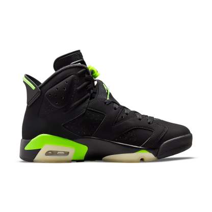 Ostensibly inspired by the University of Oregon Ducks athletic program, this Air Jordan 6 “Electric Green” is dressed in a black and electric green colorway. Lace toggles and Jumpman logo on the tongue indulge in the vibrant tone, as does the sportscar-inspired tab on the heel. Midsole replacing the Green outsole for a milky glow-in-the-dark translucent finish. SKU: CT8529-003 Release Date: Jun 5th, 2021 Color: Black/Electric Green