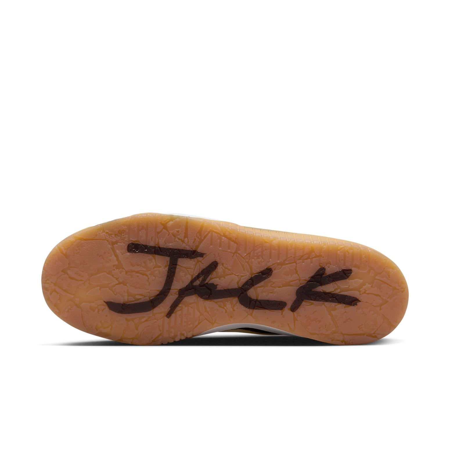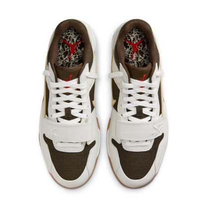 The Jordan Jumpman Jack TR ‘Sail’ presents an earthy colorway, embodying Travis Scott’s premier signature style. Crafted with care, these sneakers feature a dark brown canvas upper, complemented by off-white leather overlays and a beige reverse Swoosh on the lateral side. The traditional lace closure and adjustable midfoot strap ensure a secure fit. Vibrant crimson accents adorn the Jumpman icon atop the tongue and the Cactus Jack face logo stamped on the back heel