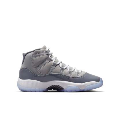 The Air Jordan 11 Retro GS ‘Cool Grey’ 2021 is a must-have for any sneakerhead. This mid-top style features a grey nubuck upper with a tonal patent leather mudguard. A stylized ‘23’ decorates the textile heel tab, while a white Jumpman logo is embroidered on the lateral ankle. Lightweight cushioning comes courtesy of a white Phylon midsole, enhanced with an encapsulated Air-sole unit and reinforced by a translucent rubber outsole.