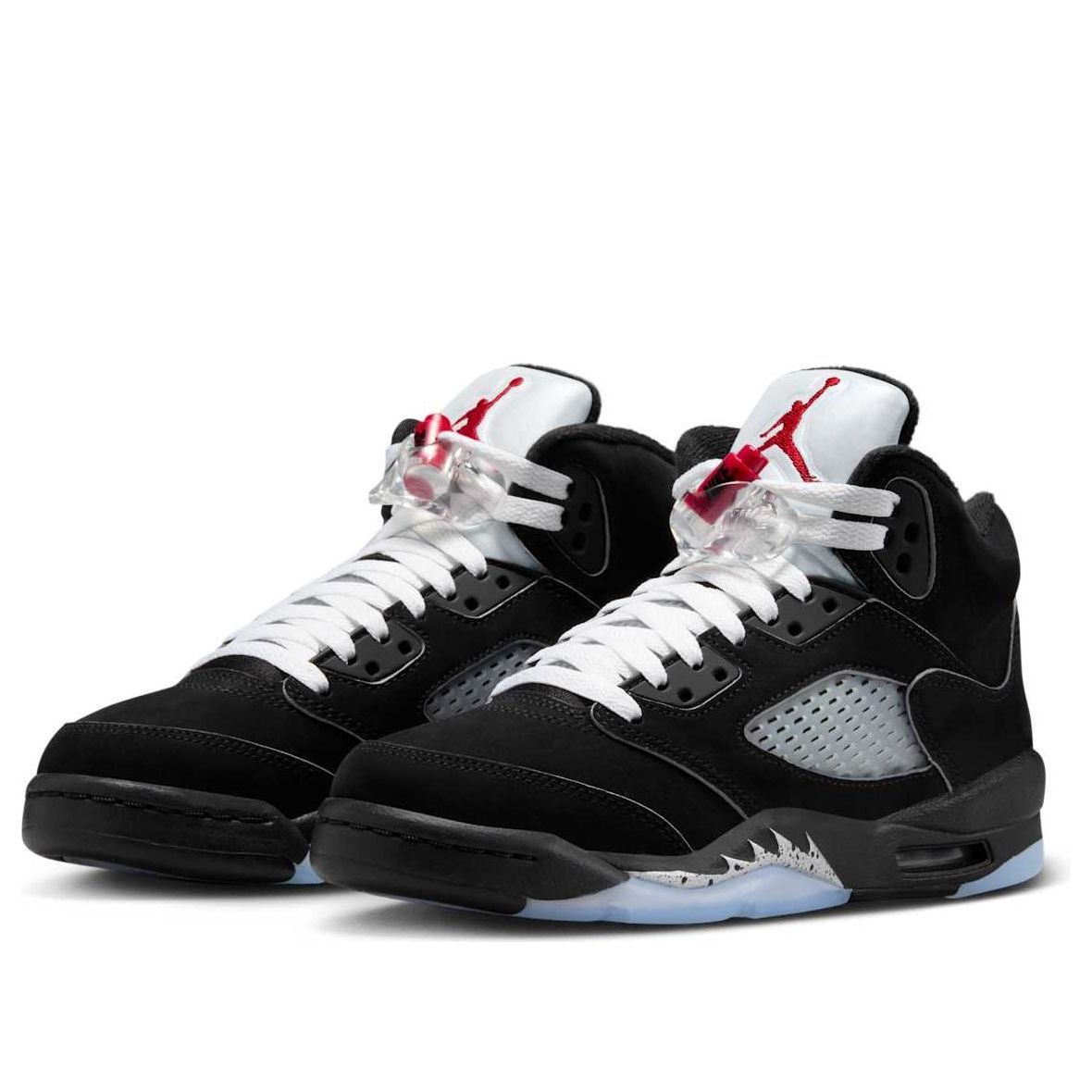 Reimagined for 2025, the Air Jordan 5 "Black Metallic" stays true to its 1990 roots. A sleek black nubuck upper, metallic silver accents, and Fire Red pops deliver a timeless yet updated classic. Modern touches enhance the iconic silhouette, making this a must-have for collectors and enthusiasts alike.