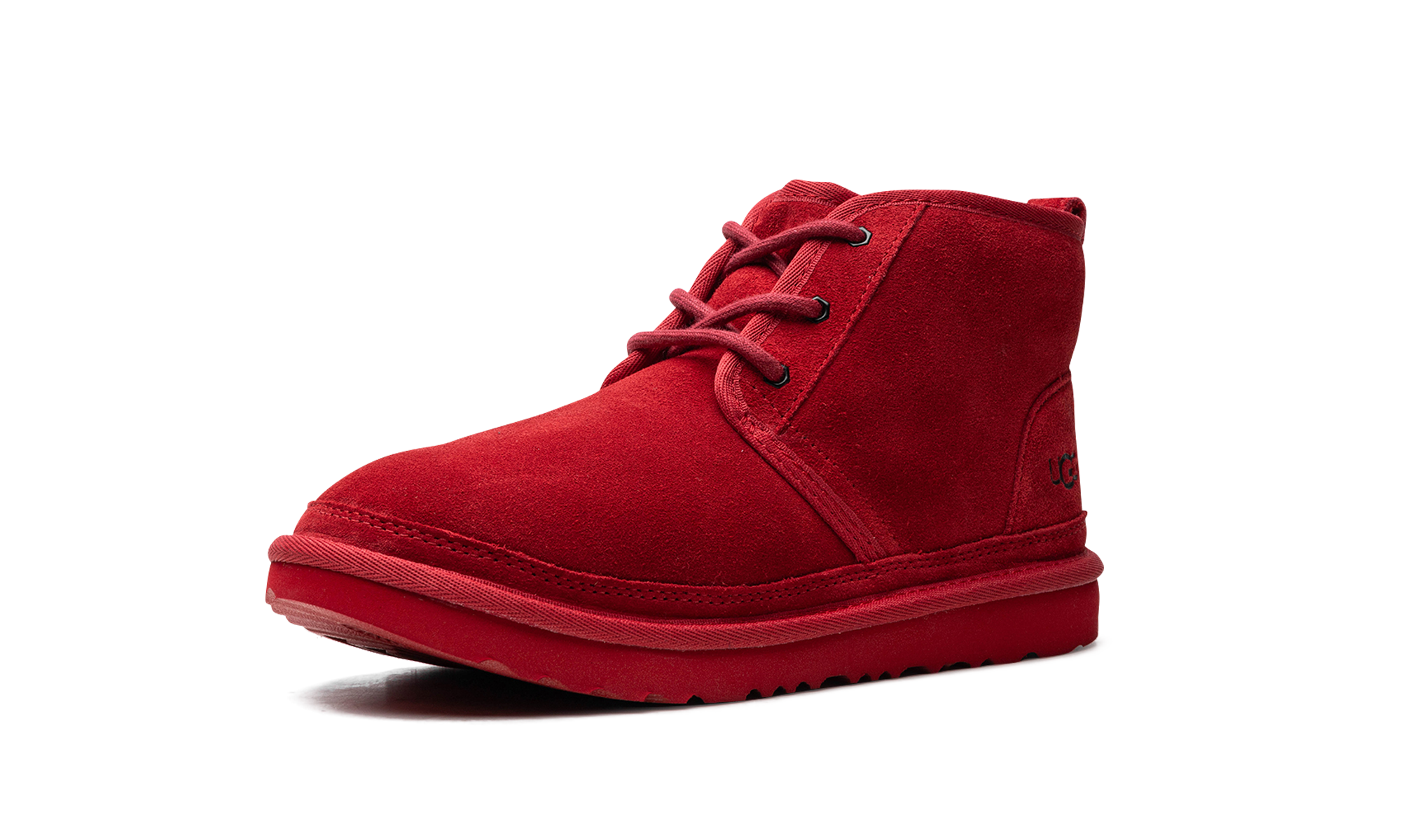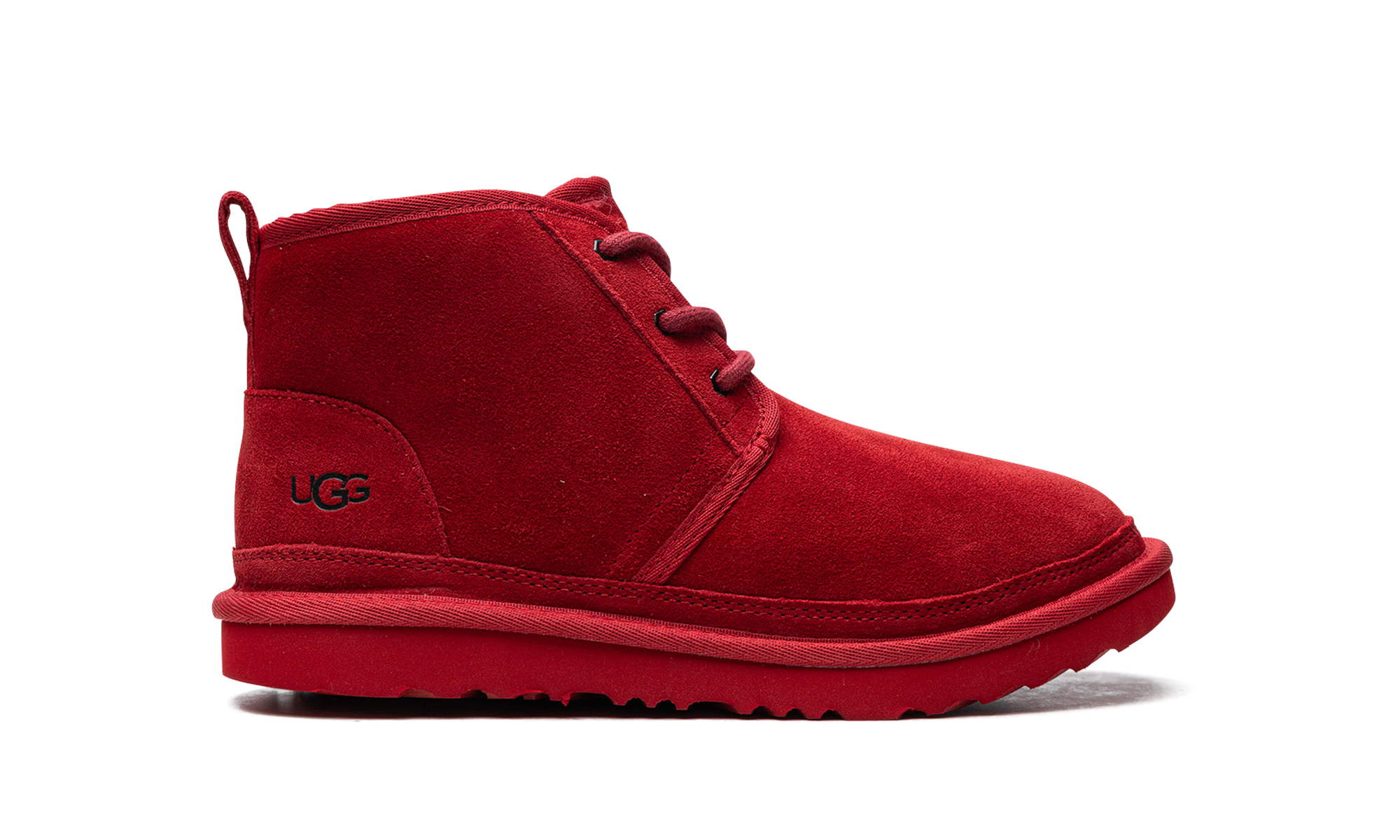 Ready to add a bold pop of color to your wardrobe? The Neumel II Boots 'Red' are a statement chukka boot for juniors, featuring a vibrant red suede upper. This popular UGG style is lined with soft UGGpure wool to deliver incredible warmth and comfort. Complete with a durable Treadlite by UGG outsole for lightweight, flexible wear, these boots offer a stylish, rugged-yet-cozy option for everyday wear.