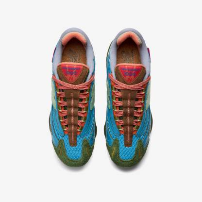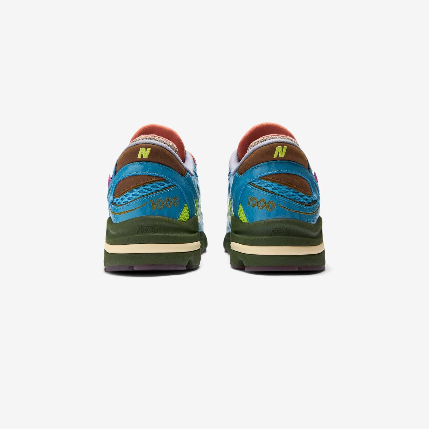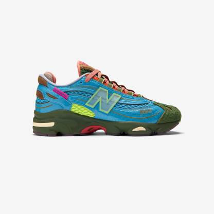 New Balance & Salehe Bembury come together once again, bringing Salehe's nature-inspired vision to the classic 1000 sneaker. With 'Fog be the cloud,' the turn-of-the-millennium classic is infused with rich textures and colors drawn from the Smoky Mountains. Mirroring the lush landscape's diversity, Bembury combines leather overlays with hairy suede tips, spacer mesh vamps, and rubber outsoles. The shoe's calming blue comes from the mountain range's iconic ridges, and is fused with the sunset's coral pink, and the deep tones of the forest below. The resulting design is as distinctive as the tranquil terrain it reflects.