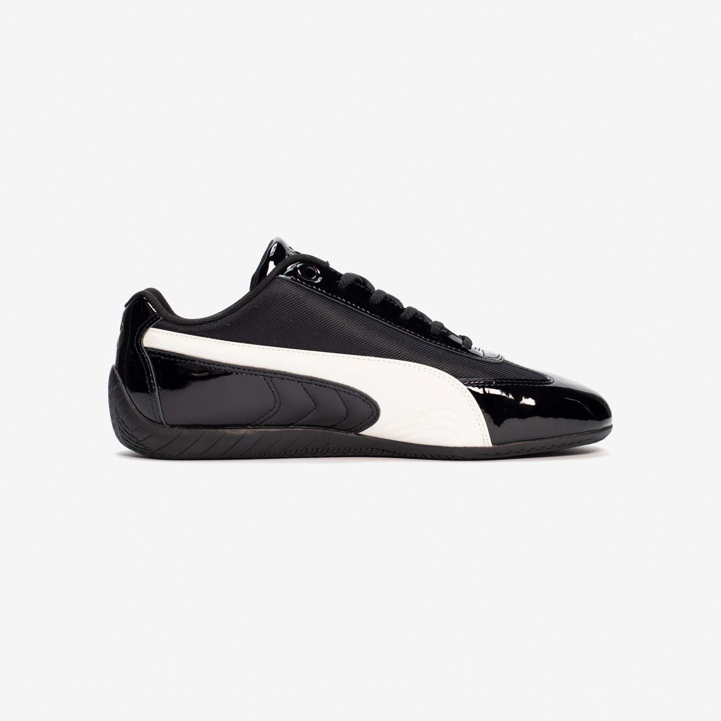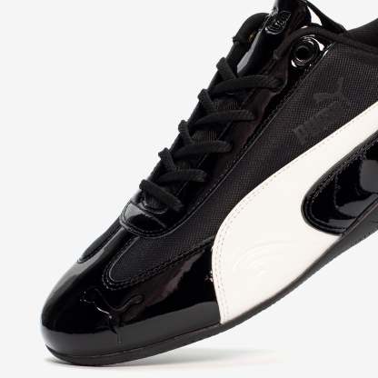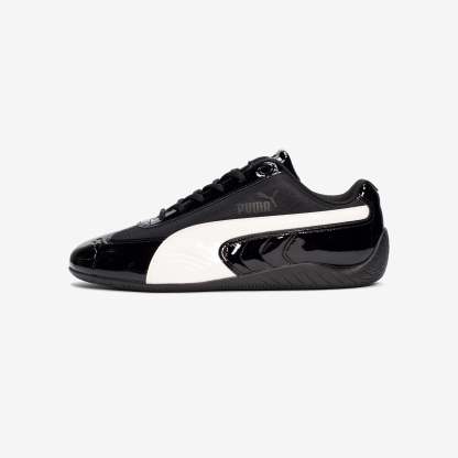 We’ve reunited with PUMA to introduce a fresh take on a cult classic: the Speedcat. Born in 1999, our elevated take on the PUMA Speedcat nods to early 2000s designs that fused motorsport, football, and high fashion into one clean, sculpted form. With a premium OG colorway, the SNS x PUMA Speedcat features patent leather overlays, special eyelets, a molded patent Formstrip, and gunmetal lace tips—bringing a high-shine, and throw-back vibe to a modern silhouette built for everyday movement. A tonal nylon base, tonal SNS and PUMA logos, and no suede in sight complete the clean, futuristic look.