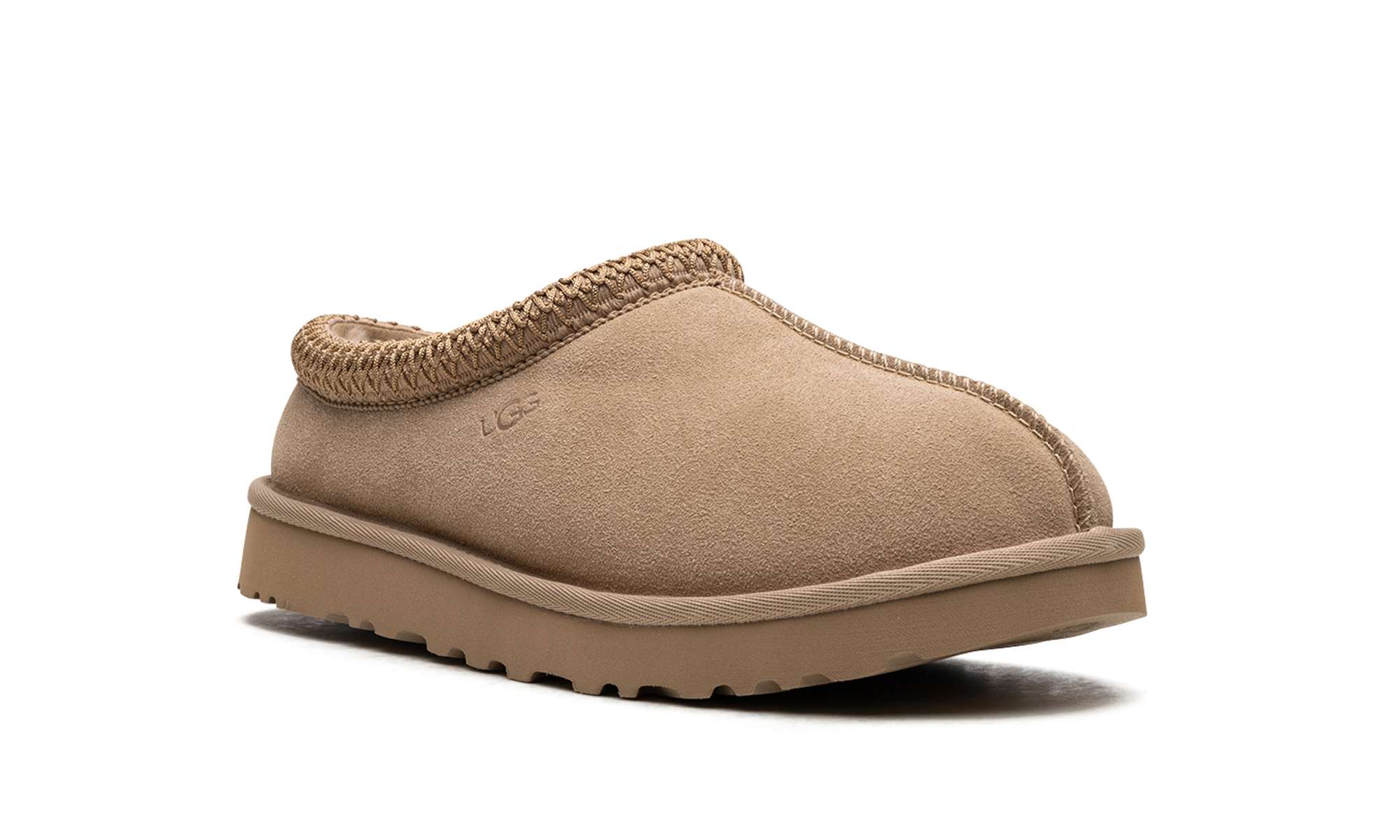 Unleash ultimate comfort with the UGG TASMAN WMNS, famed as the "Sand" slip-on moccasin. These indoor/outdoor slippers feature a classic tan suede upper and an ultra-soft lining of plush sheepskin and upcycled wool for luxurious warmth. The standout embroidered textile braid wraps the collar for added style. Finished with a durable EVA foam sole and traction pattern, the Tasman provides reliable grip for quick errands or cozy days at home.