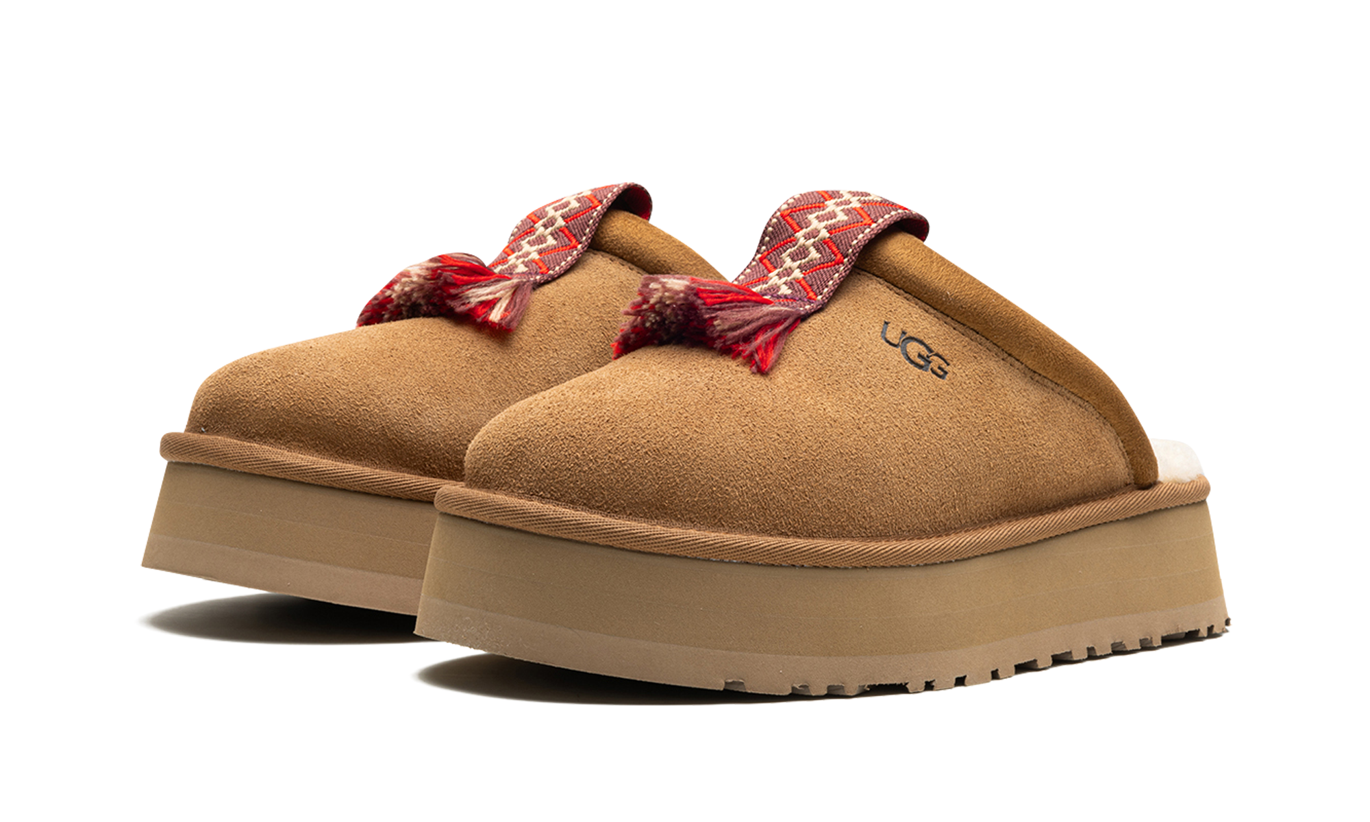 Get ready to elevate your everyday look with the viral UGG Tazz Wmns "Chestnut," perfectly named the 'Maximalist Mule!' This chic slipper takes the beloved Tasman silhouette and amplifies it with a trendy 1.75-inch platform outsole for subtle height and cushioning. Crafted from soft suede and featuring the signature UGGbraid detail, it’s lined with ultra-plush UGGplush™ wool for decadent, moisture-wicking comfort. Finished with a durable, eco-conscious Sugarcane EVA outsole, this easy slip-on is perfect for stepping out in style.