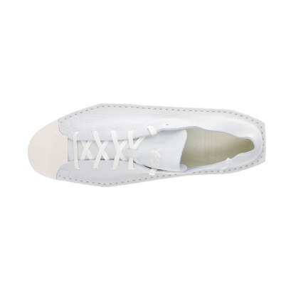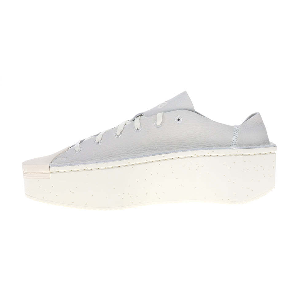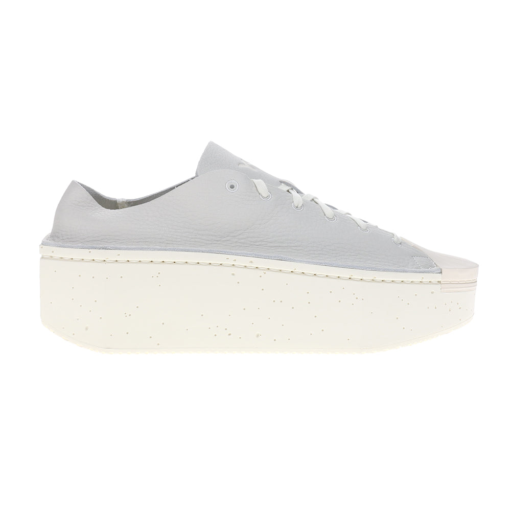 The Y-3 Kyasu Lo skews conventional design and focuses instead on minimalist expression. Without any glue or lining, the tooling is crafted with a one-piece polyurethane build, and the single-layer, undyed leather upper is stitched onto the irregular, concrete-like structure. The result is a completely raw interpretation of a shoe and an entirely new interpretation of an adidas icon.